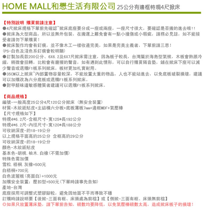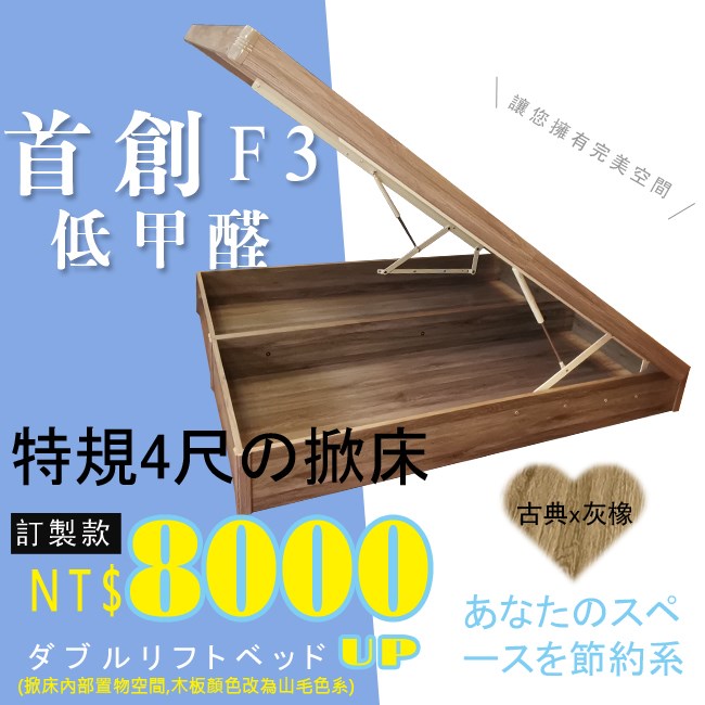 F3板有邊框掀床(25公分)灰橡色特規4尺掀床
