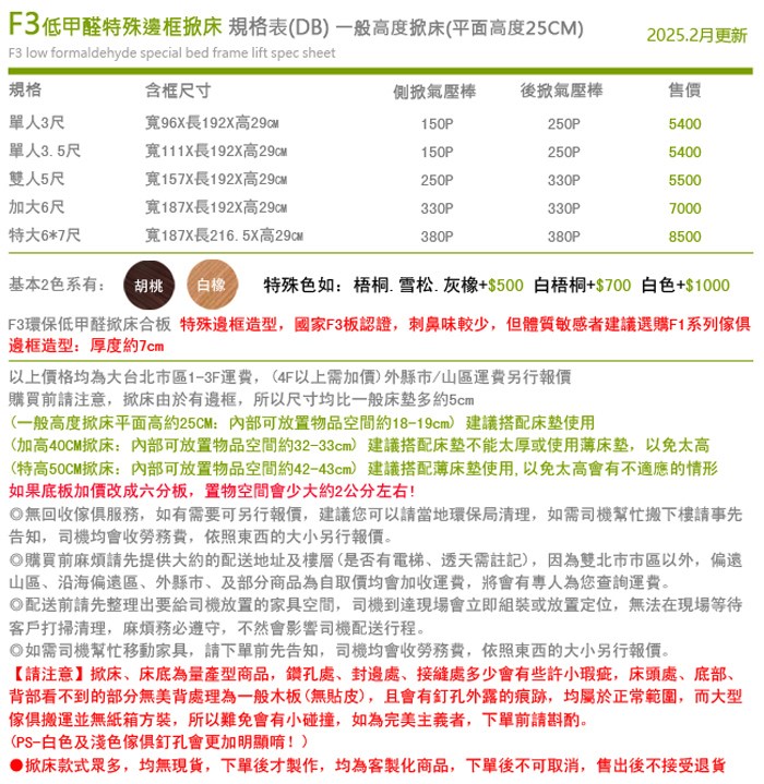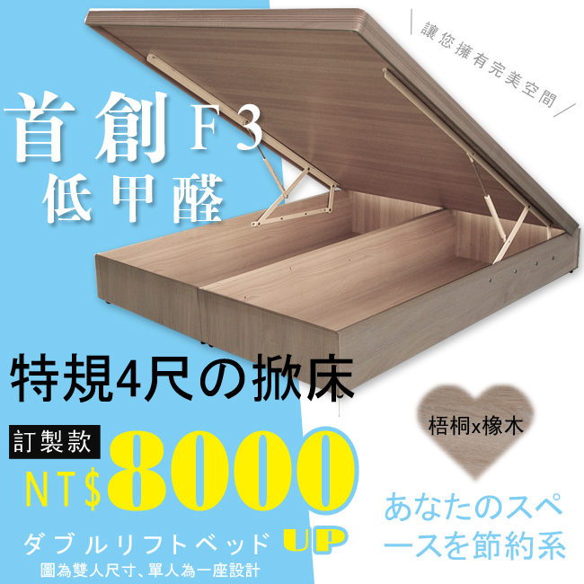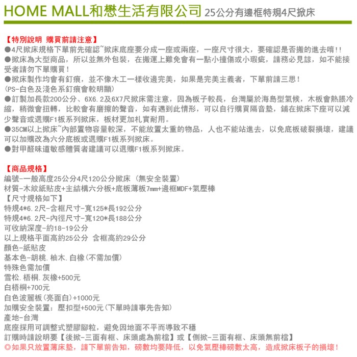 F3板有邊框掀床(25公分)梧桐色特規4尺掀床