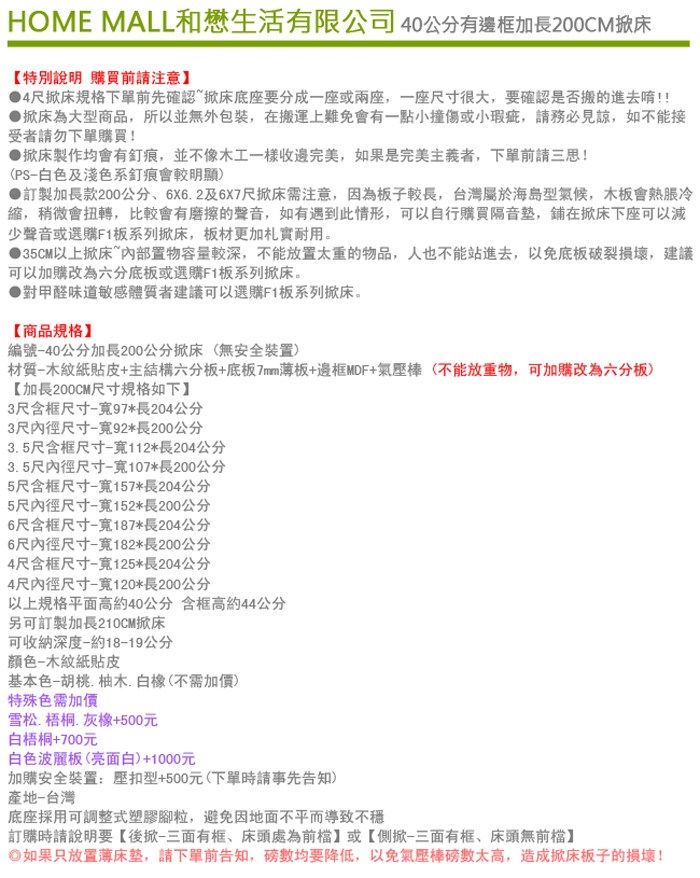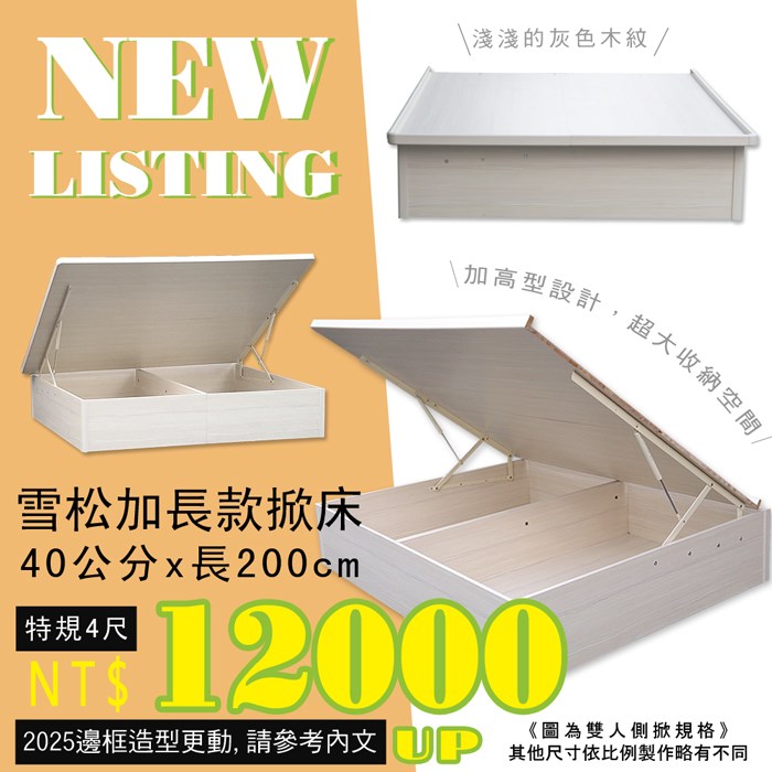 F3板有邊框掀床(30~40公分)雪松色120x200公分掀床